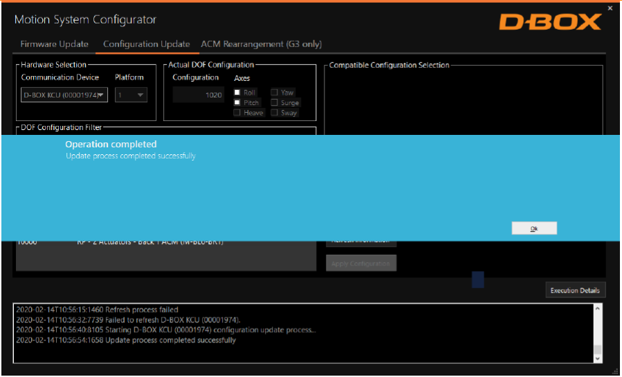 Once the configuration is chosen, click the Apply Configuration button to start the configuration update process, then follow the onscreen instructions. Once the configuration update is complete, the following confirmation window appears.